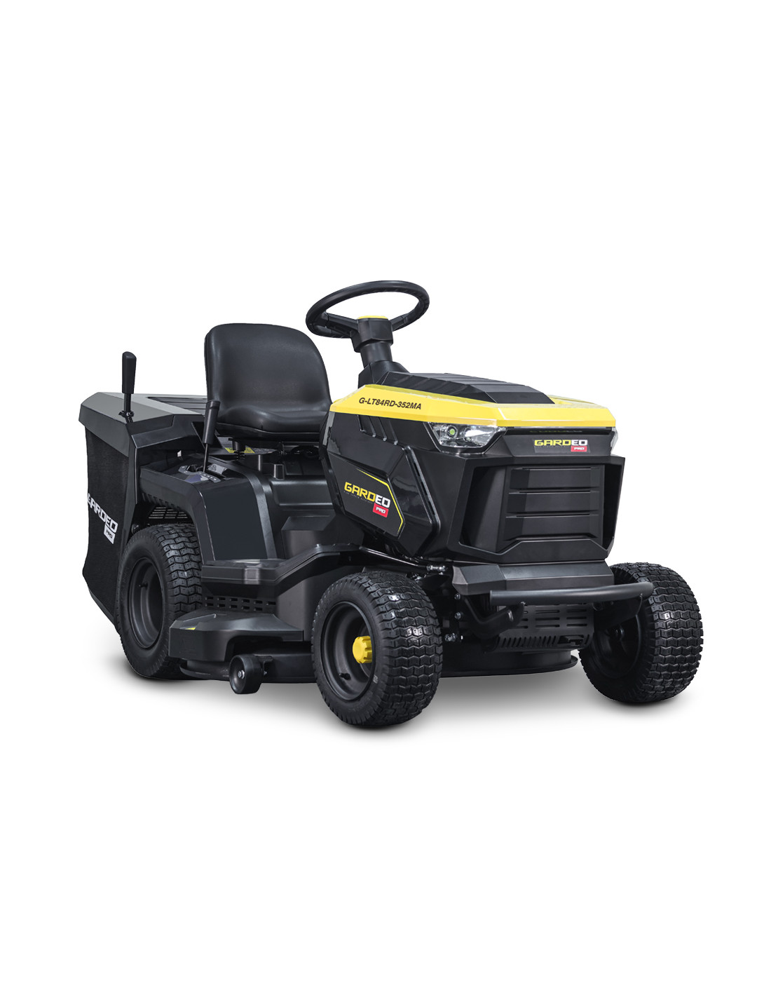 Le tracteur tondeuse Gardeo Pro est équipé d’un moteur Loncin de 352cc / 7.2Kw et dispose d’un bac de ramassage arrière de 280L. Cette tracteur tondeuse dispose de 5 vitesses avant ( 2.23 / 3.53 / 5.29 / 6 et 8.64 km/h) ainsi que d’une vitesse arrière ( 2.7km/h) afin de vous garantir un meilleur contrôle lors de la tonte. Le plateau de coupe de 83cm est équipé de 2 lames et d’un réglage de la hauteur de coupe centralisé avec 6 positions (de 30 à 90mm) Le tracteur dispose d’une fonction mulching qui consiste à répandre l’herbe coupée sur votre gazon. Cette technique permet de fertiliser votre gazon et permet d’obtenir une herbe plus verte et en meilleure santé. Pas besoin de vider le bac ni de devoir transporter les déchets de tonte à un point de collecte.