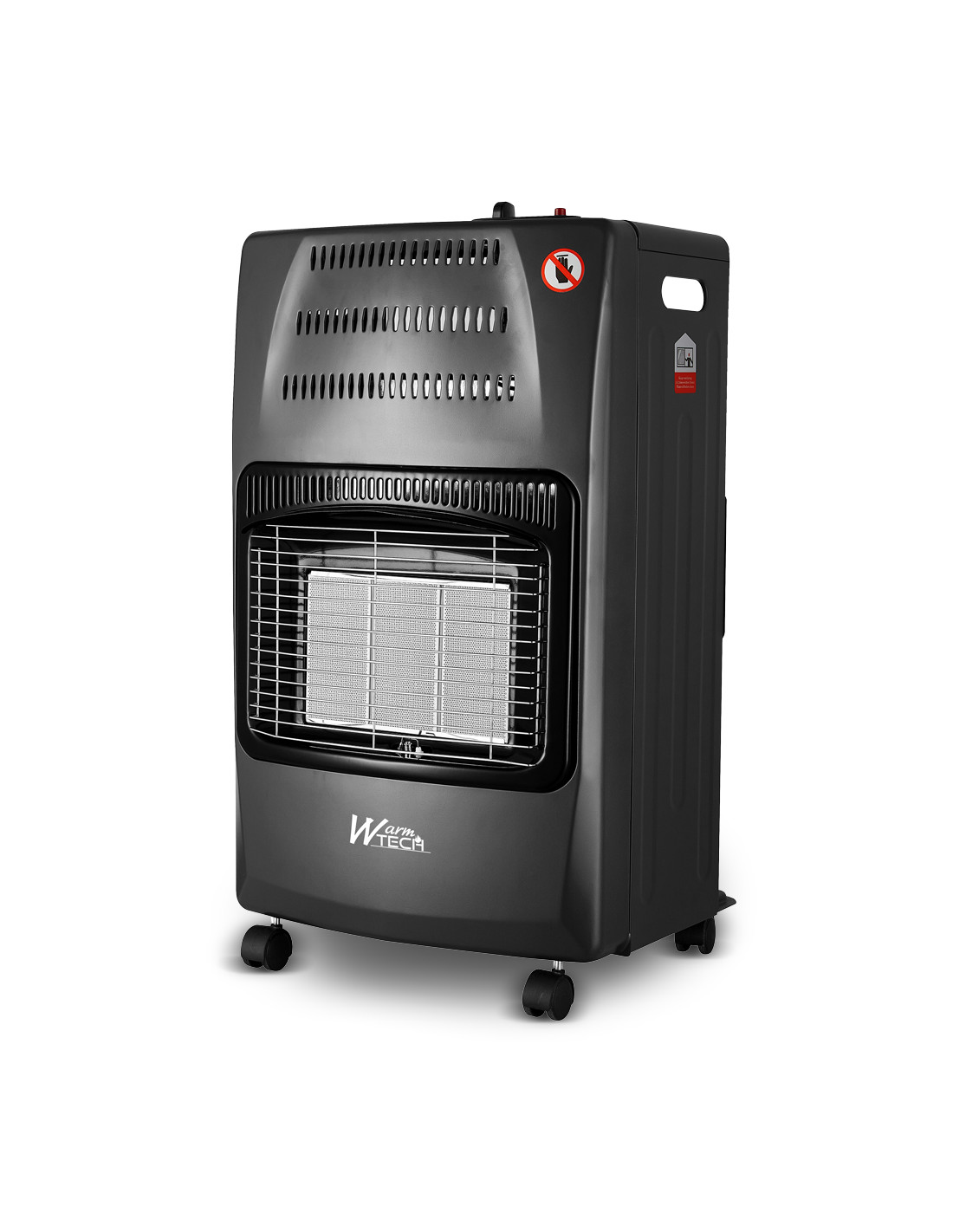 Ce chauffage au gaz infrarouge pliable d'une puissance de 4200 W possède 3 plaques céramiques et fonctionne avec du gaz butane. Il dispose de 3 positions de chauffe : 1500, 2800 et 4200 W. Il est équipé d'un piezzo. Pour une utilisation sûre, ce chauffage au gaz est équipé d'un système qui coupe l'arrivée de gaz en cas d'extinction de la flamme. Il est également équipé de roues pour que vous puissiez le déplacer facilement. Ce modèle de chauffage est pliable. Il peut donc être rangé facilement en fin de saison. Le chauffage WTCC4200-25 est conforme pour le marché français. (livré sans tuyau ni détendeur). Caractéristiques : - Puissance: 4200 W - 3 positions: 1500/2800/4200 W - Consommation de gaz : minimum 110 g/H – moyenne 200 g/H – maximum 305 g/H - 3 plaques céramiques - Fonctionne avec du gaz butane (28-30 mbar) - Équipé d'un piezzo - Convient une pièce de max 84m³ - Sécurité coupure de l'arrivée de gaz en cas d'extinction de flamme - Sécurité anti-basculement - Hauteur du produit : 72 cm - Livré sans tuyau ni détendeur - Équipé de roues pour faciliter le déplacement - Modèle pliable - Dimensions monté 42 x 32 x 72cm - Classe énergétique A