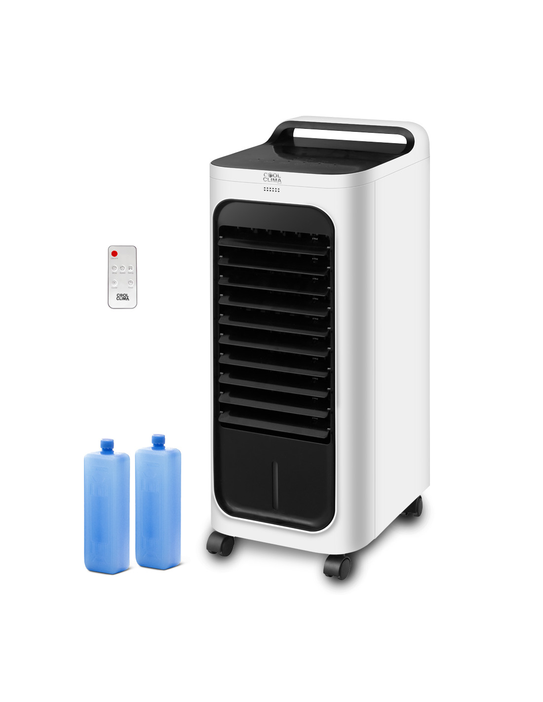 Ce rafraîchisseur d'air 80 W de la marque Cool Clima est idéal pour rafraîchir l'air d'un bureau ou d'une pièce de taille moyenne. L'effet de refroidissement est obtenu grâce à l'évaporation de l'eau (+ glaçons) du réservoir de manière écologique (fonctionne sans gaz). En plus d'être un ventilateur et un rafraîchisseur d'air, il peut aussi être utilisé comme humidificateur dans les pièces qui en ont besoin. Il permet d'améliorer la qualité de l'air intérieur. Vous pouvez régler le débit d'air (max 336m³/H) grâce aux 3 positions disponibles. Compact et mobile, il est équipé de roues afin de faciliter le déplacement. Ce produit est livré avec 2 poches de glaçons. Caractéristiques :